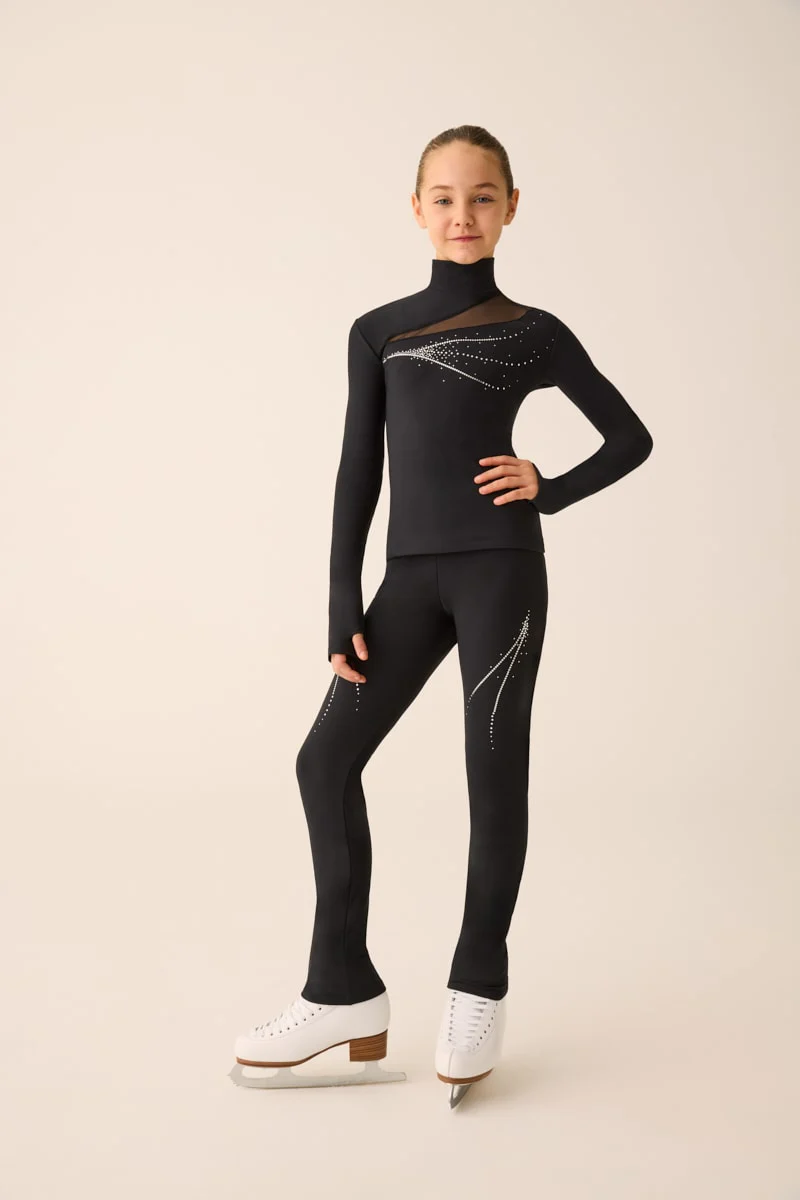 La vestibilità aderente segue le linee del corpo con naturalezza, offrendo libertà di movimento nelle rotazioni, nei salti e nelle figure tecniche caratteristiche del pattinaggio su ghiaccio, e riflette la passione Pridance per capi che uniscono performance tecnica, eleganza scenica e comfort continuo.