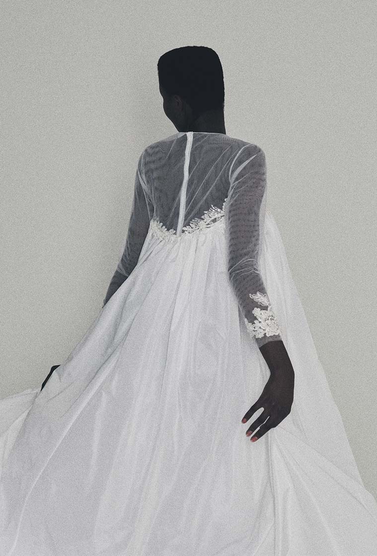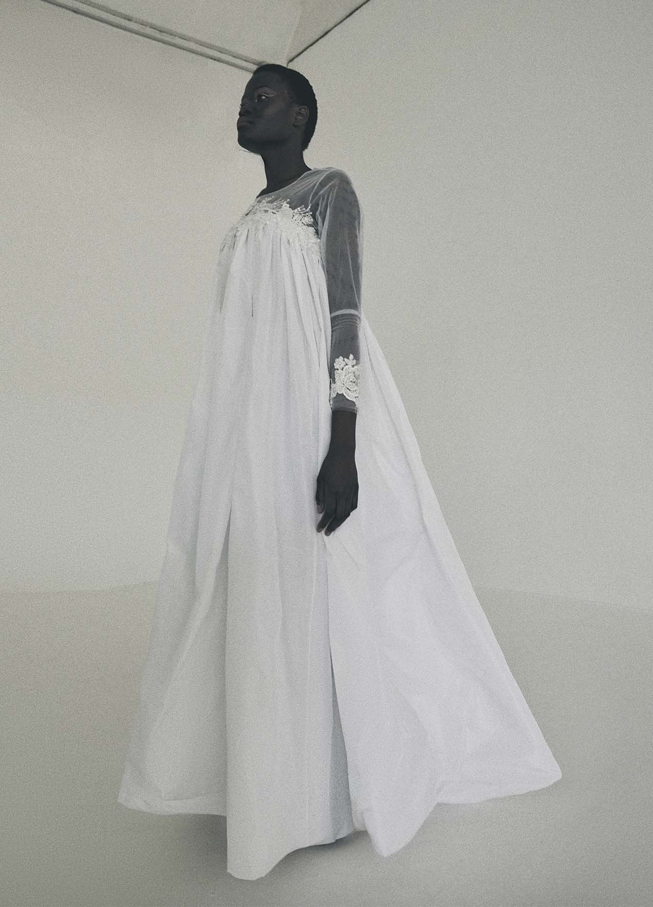 Taffetaฬ: 72% acetato, 28% poliestere Tulle: 100% seta Ricamo di paillettes: 100% poliestere Fodera: 67% acetato, 33% poliestere