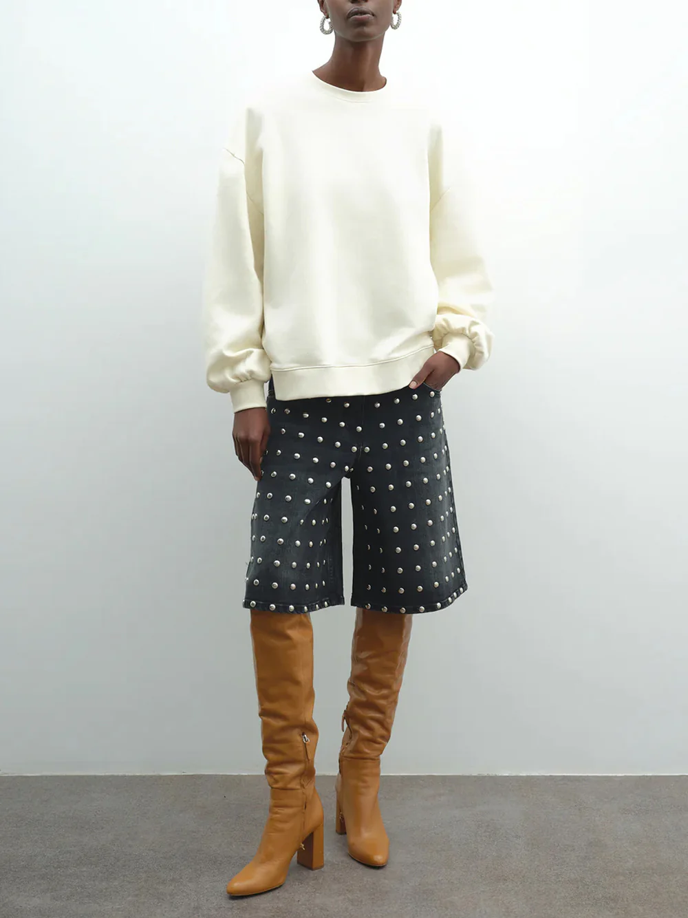 Dai un twist grintoso al tuo look invernale con il bermuda da donna in denim nero con borchie firmato Akep. Realizzato in denim, combina comfort e stile grazie al design relaxed fit, la vita media e i dettagli di borchie applicati lungo la gamba. Ideali per look streetwear, casual o rock-chic, questi shorts in jeans […]