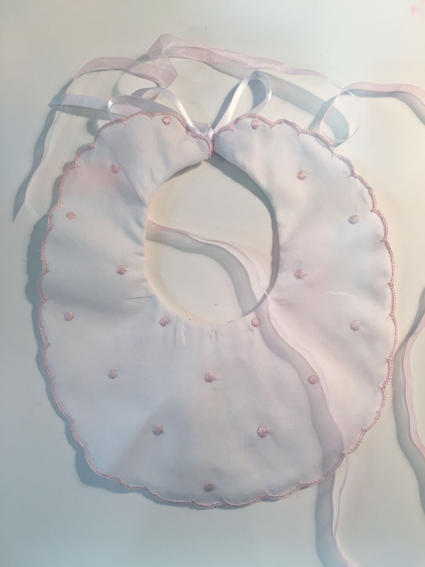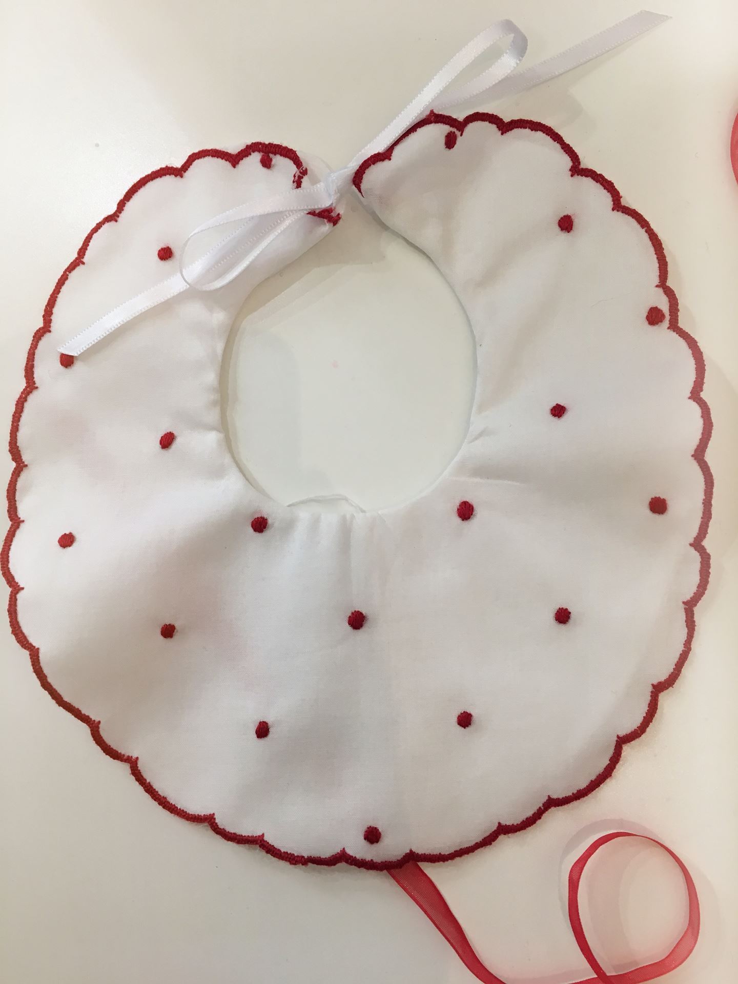 Bavetta in cotone bianco ricamata a mano in vari colori