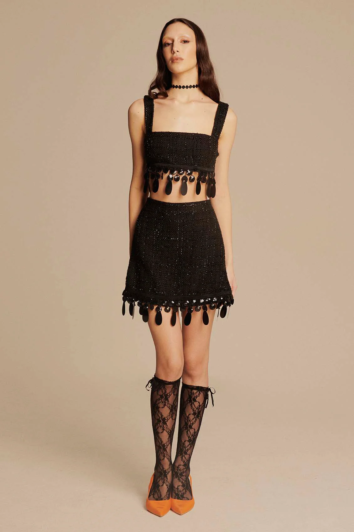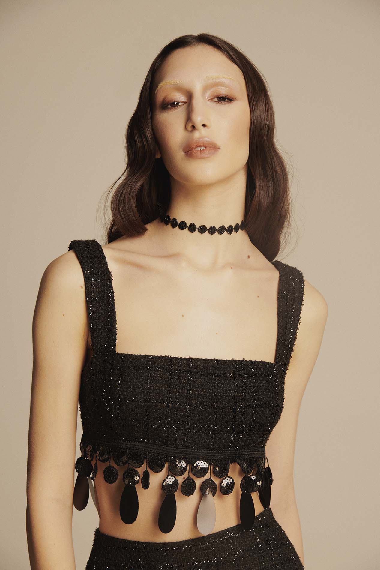 Boucleฬ: 60% poliestere, 27% lurex, 13% seta Fodera: 68% acetato, 29% viscosa, 3% elastan Ricamo: 100% poliestere La modella รจ alta 178 cm e indossa una taglia EU 40