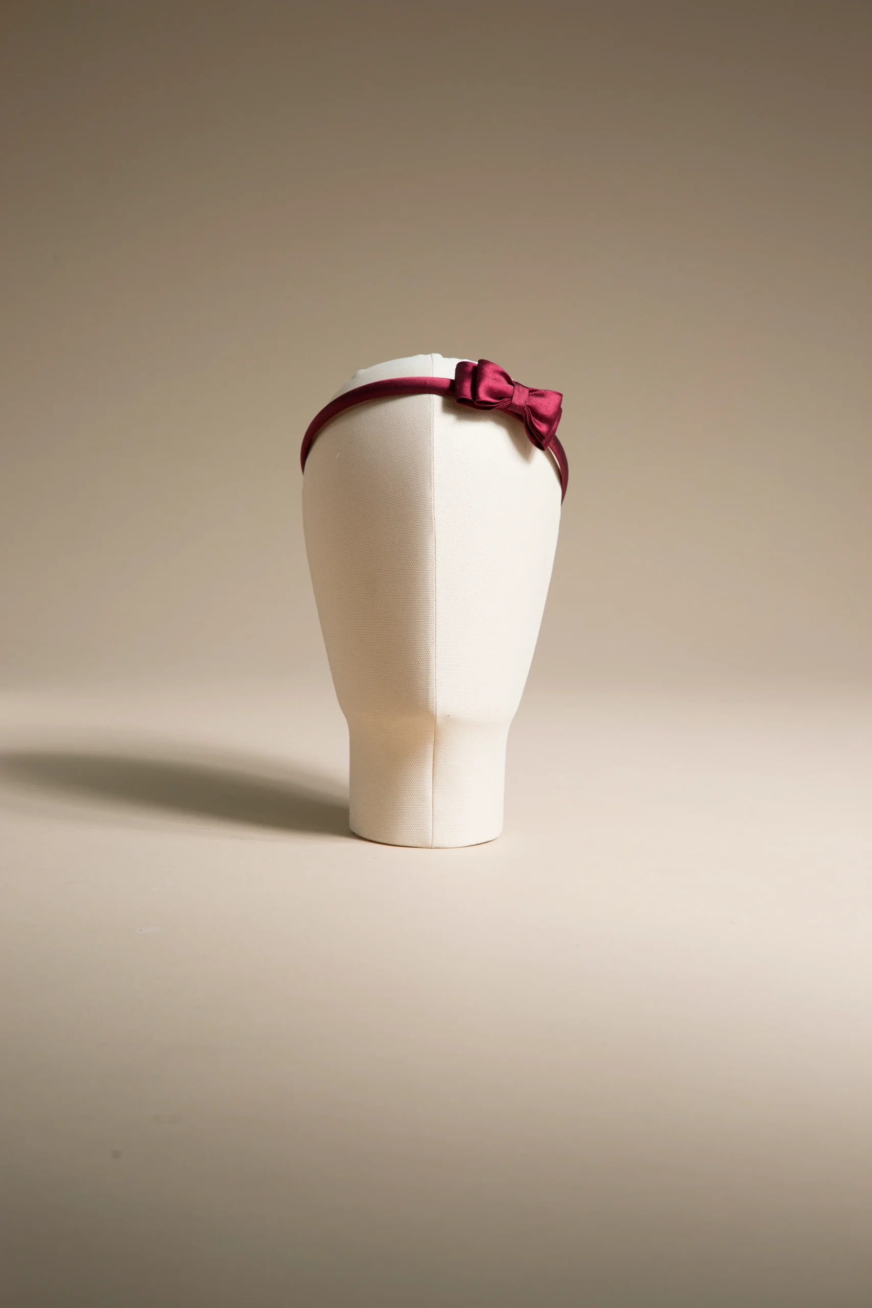 Cerchietto con mini doppio fiocco in mikado seta bordeaux.