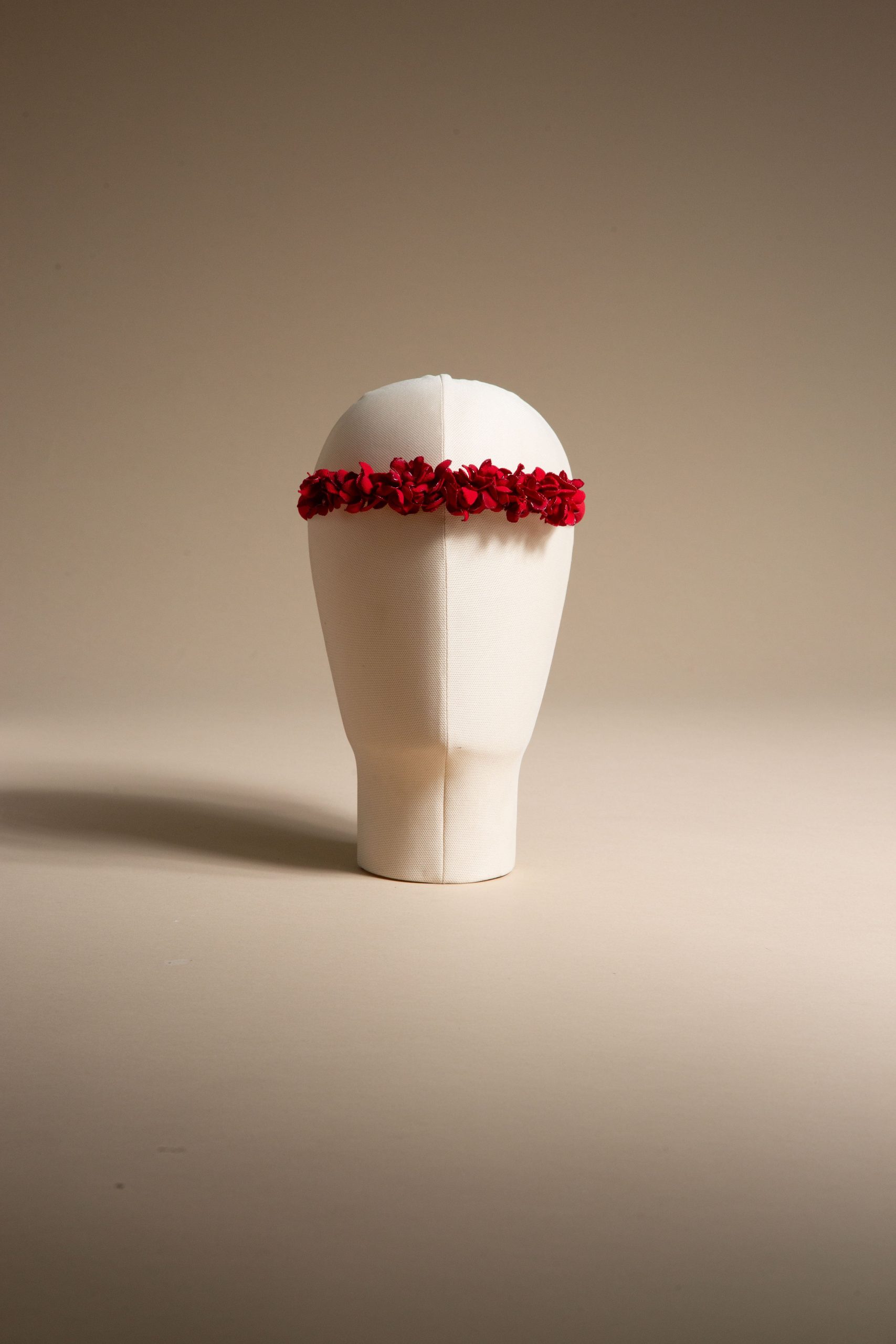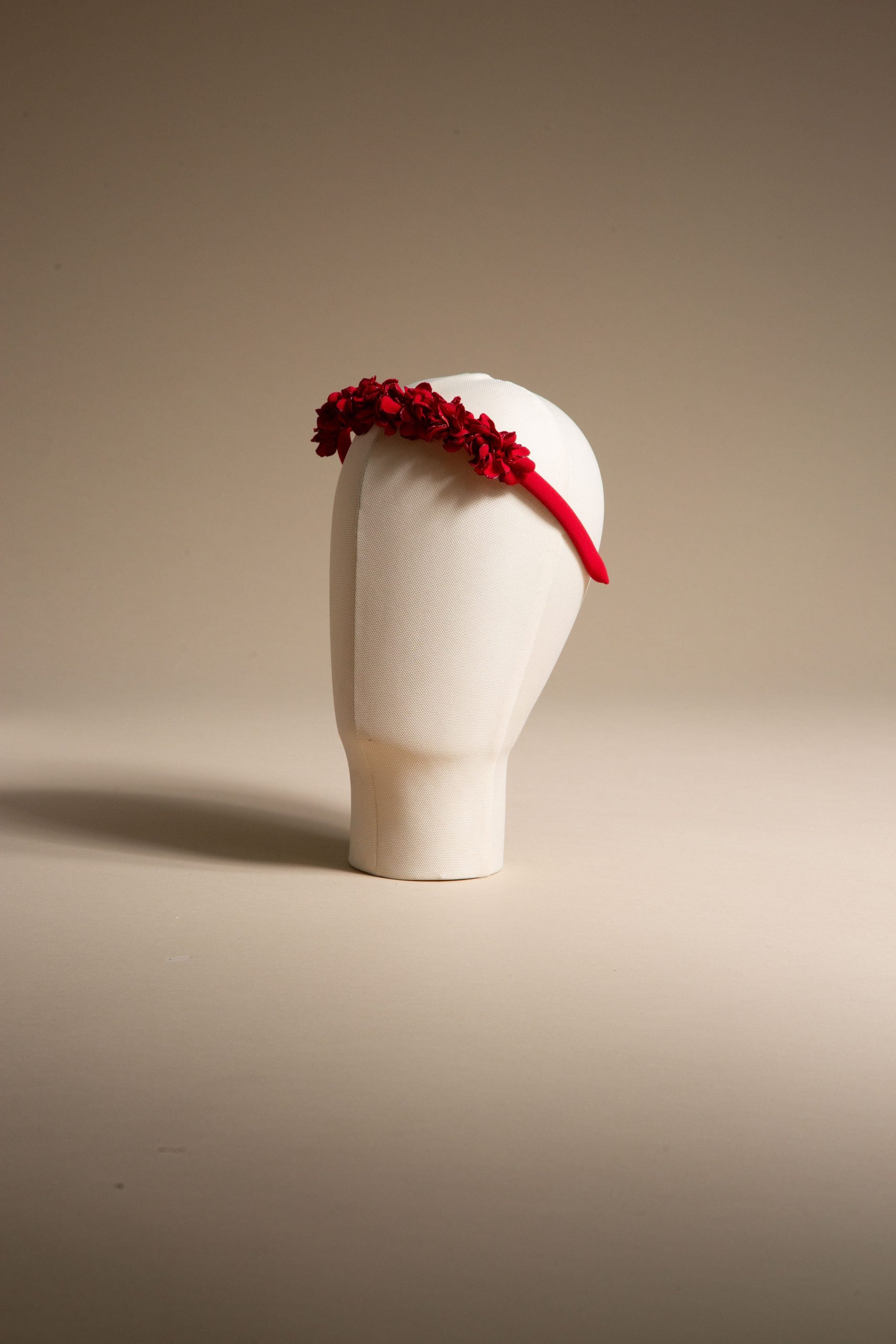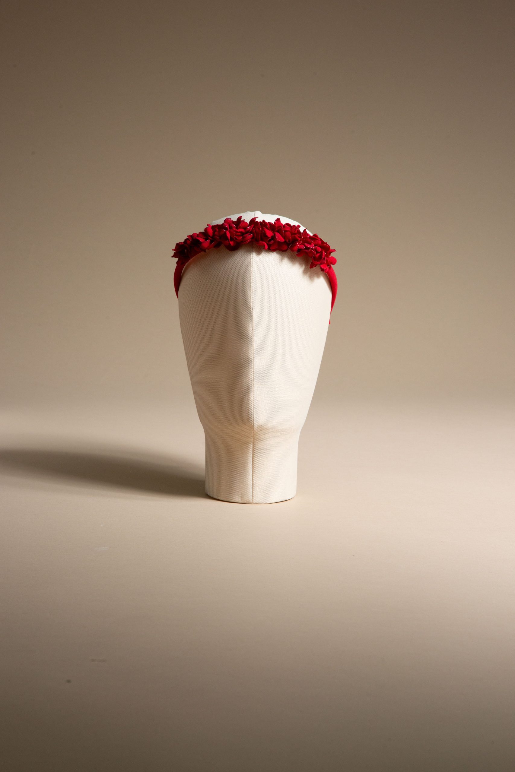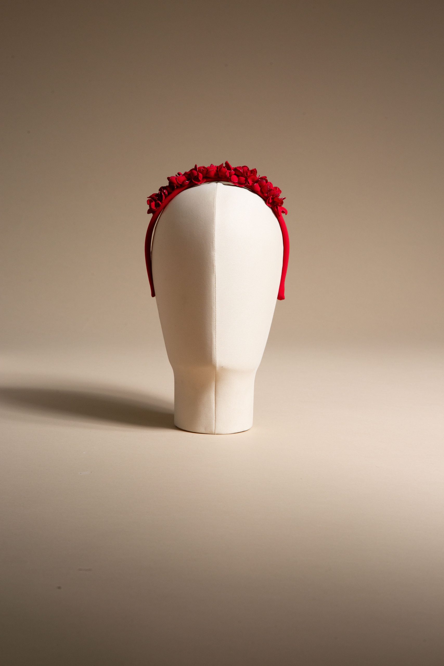 Cerchietto in cady rosso fuoco con micro fiori tridimensionali realizzati a mano.