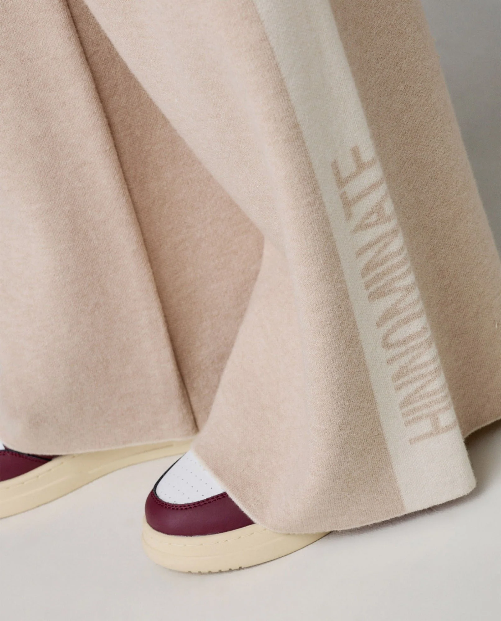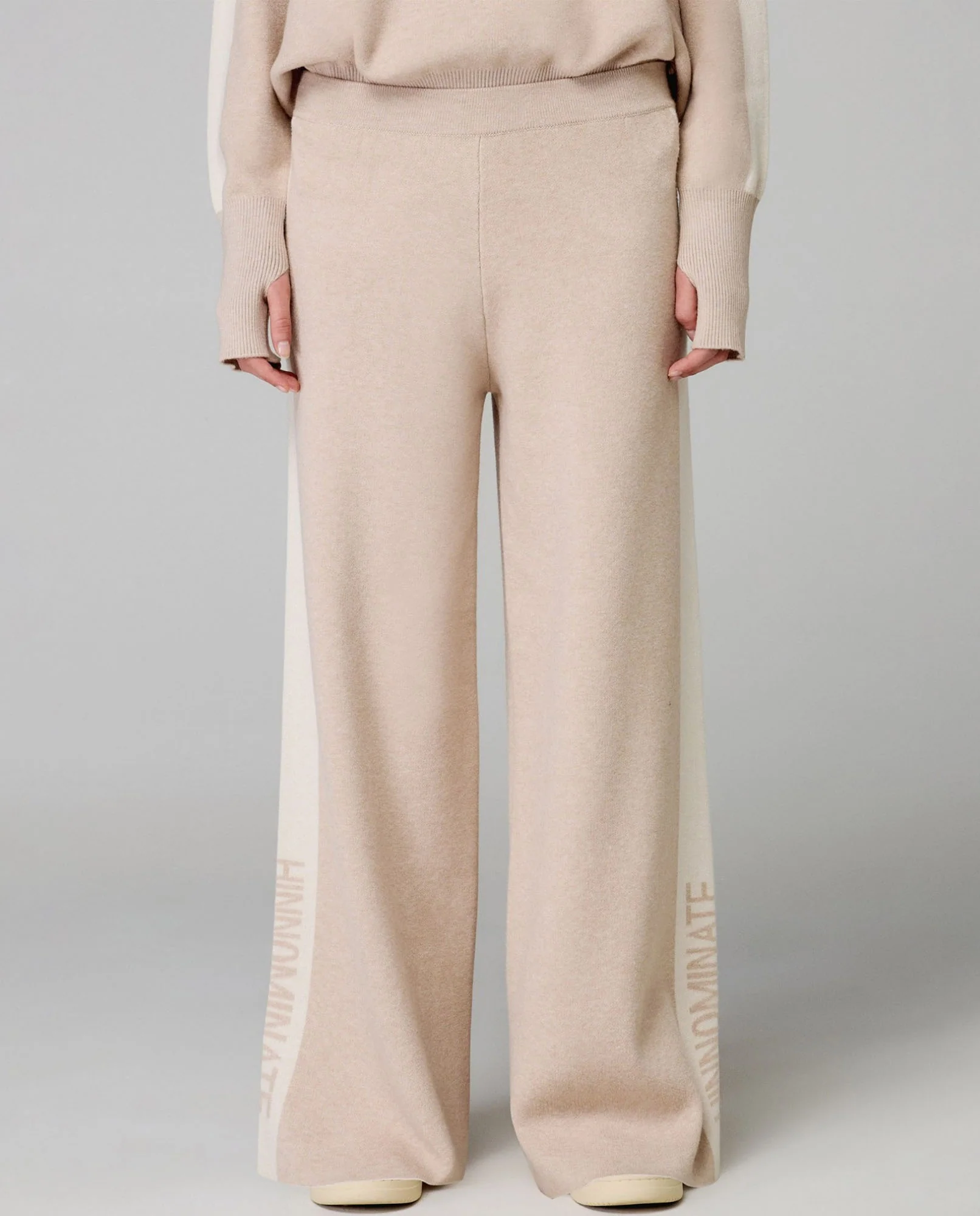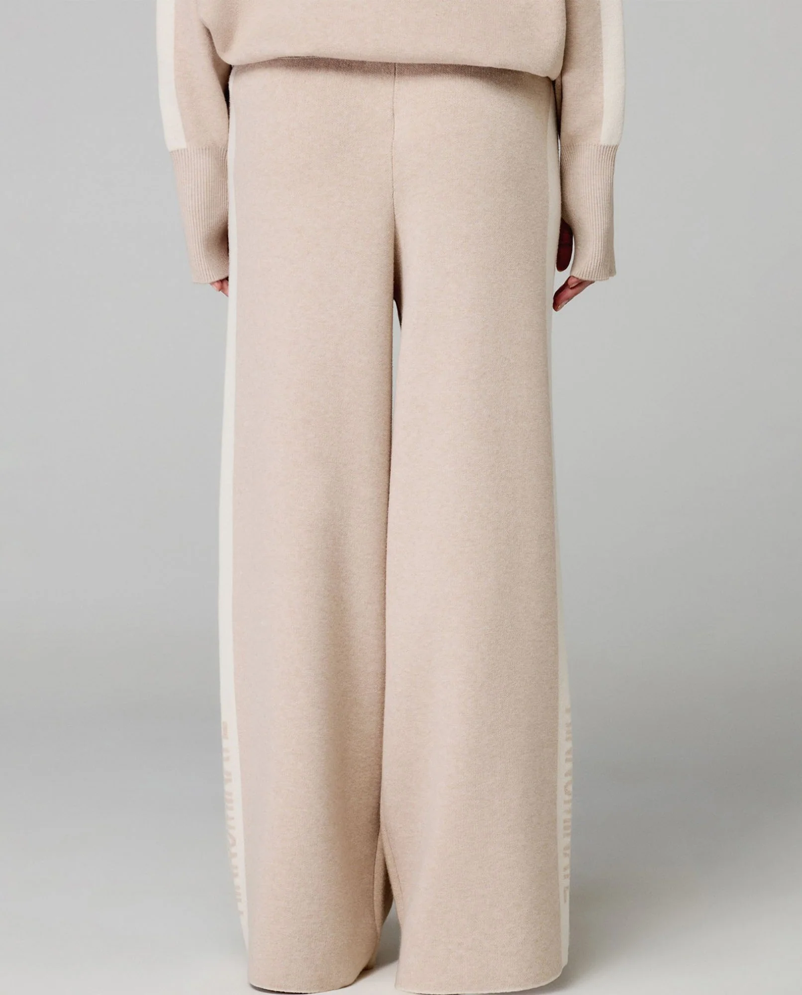 Pantalone in maglia a palazzo con bande a contrasto e logo in punto rovescio. Vita elasticizzata.