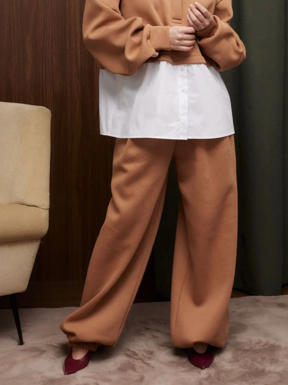 Jogger ampi con pences, vita elasticizzata.