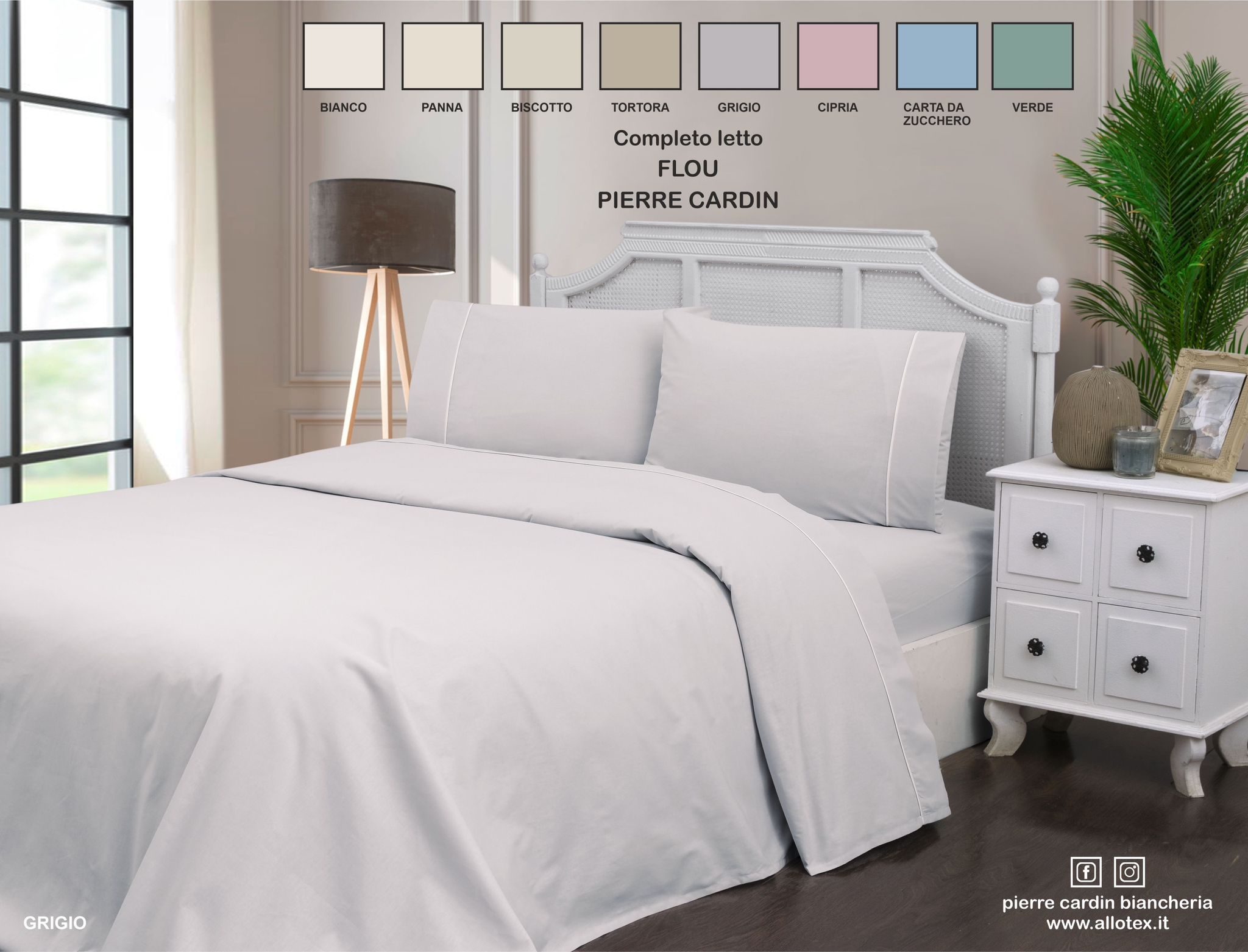 Pierre Cardin✨️ Completo lenzuola matrimoniale 100% cotone Made in italy (Perla/bianco)