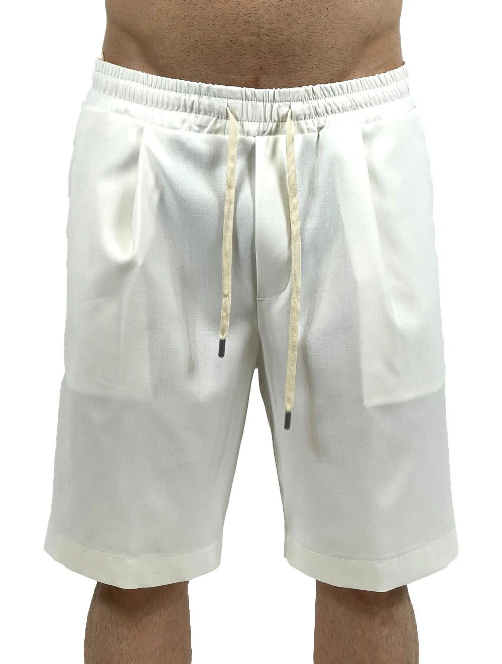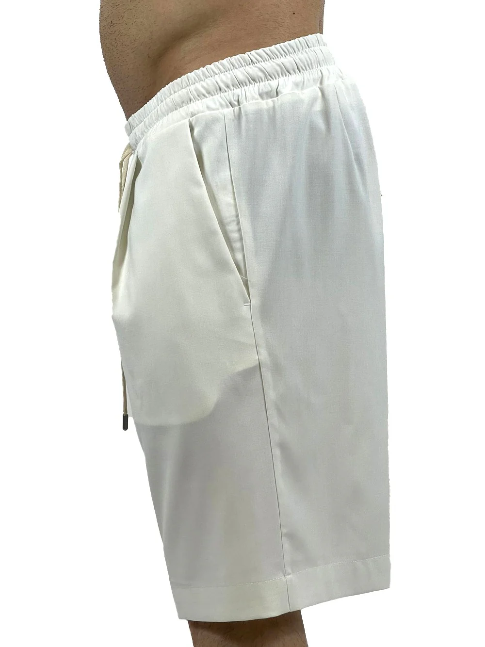 Bermuda con vita elasticizzata e coulisse. Tascone sul retro. Tasche a filetto sul davanti.