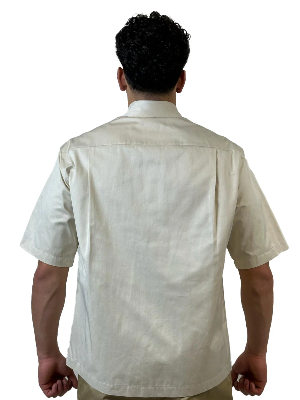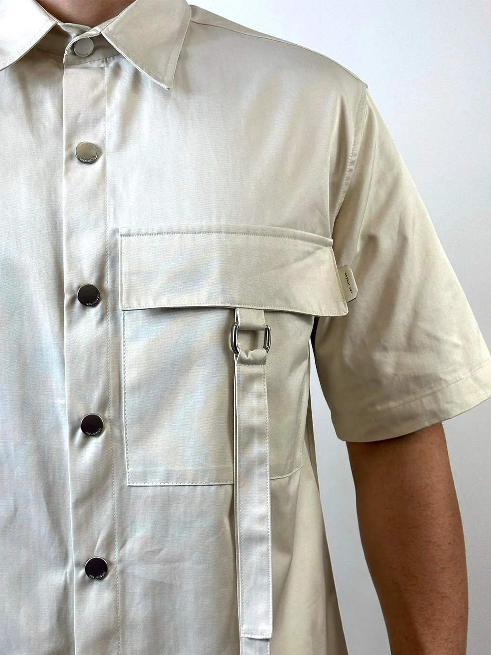 Camicia over crop a manica corta in cotone con chiusura bottoni. Tascone sul petto.