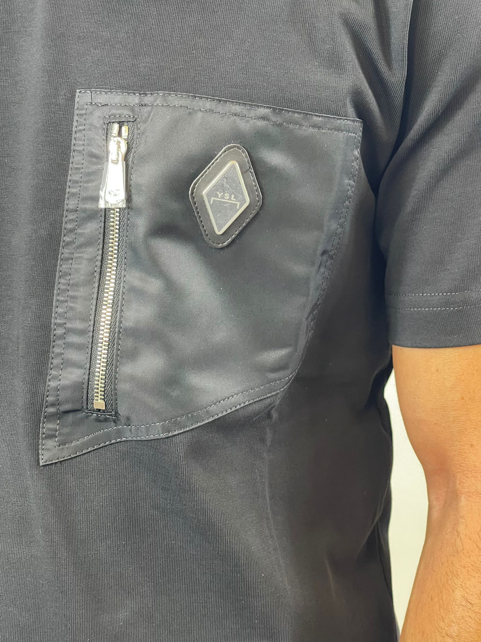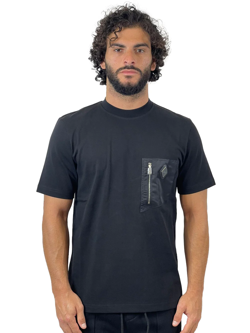 T-shirt manica corta con inserto in nylon con zip e logo. Girocollo.